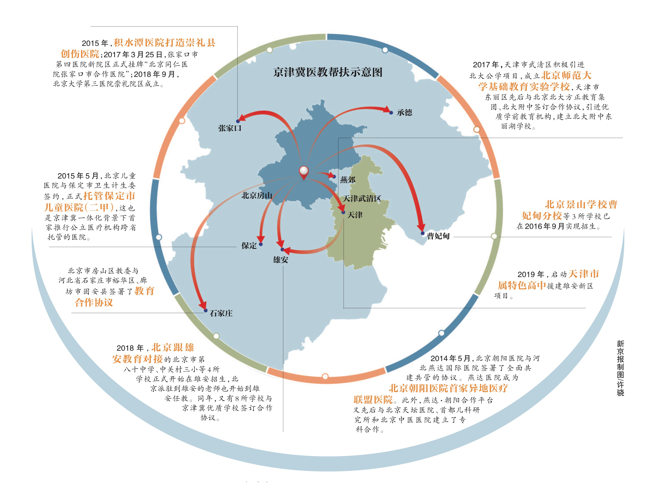 在三地政府的推动下,2014年至2019年间,北京景山学校曹妃甸分校正式实现招生;河北省6所交通类职业院校加入北京交通职业教育集团;北京师范大学基础教育实验学校在天津市武清区成立……这些合作项目相继落地,使得更多的学生受惠。