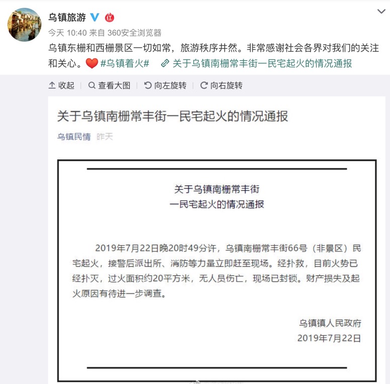 编辑 郑艺佳 校对 李项玲 图片 乌镇景区官方微博截图、乌镇旅游官方微博截图、桐乡市人民政府官网截图