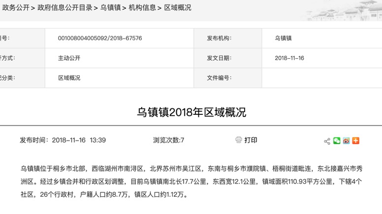 乌镇并非只指乌镇景区。根据桐乡市人民政府官网的信息,乌镇景区位于桐乡市乌镇镇,乌镇镇户籍人口约8.7万,镇域面积110.93平方公里,下辖4个社区,26个行政村。