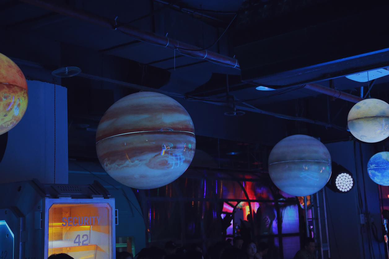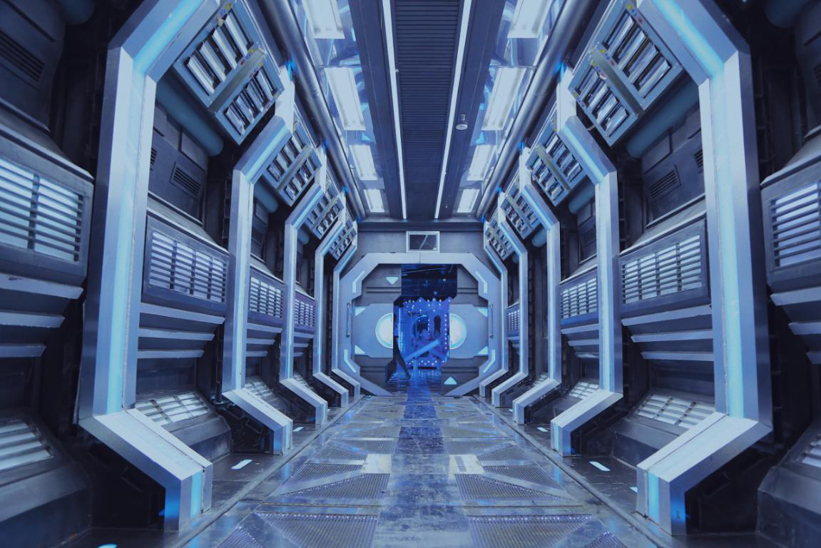 带着对宇宙的种种想象进入银河社区,银灰色的长隧道散发着蓝绿色的光,充满科技感,走在里面顿时感到时空交错,像是搭上了王家卫电影《2046》里那趟通往未来的神秘列车。