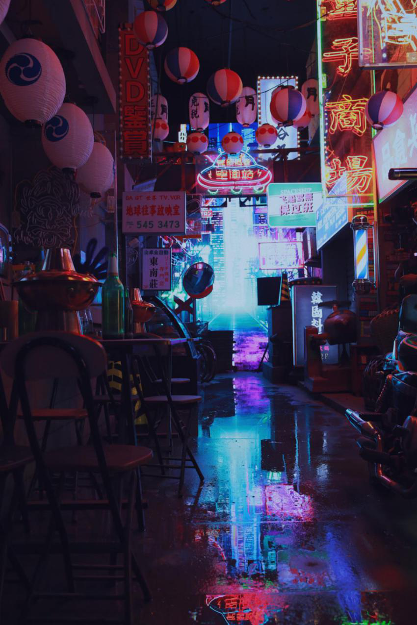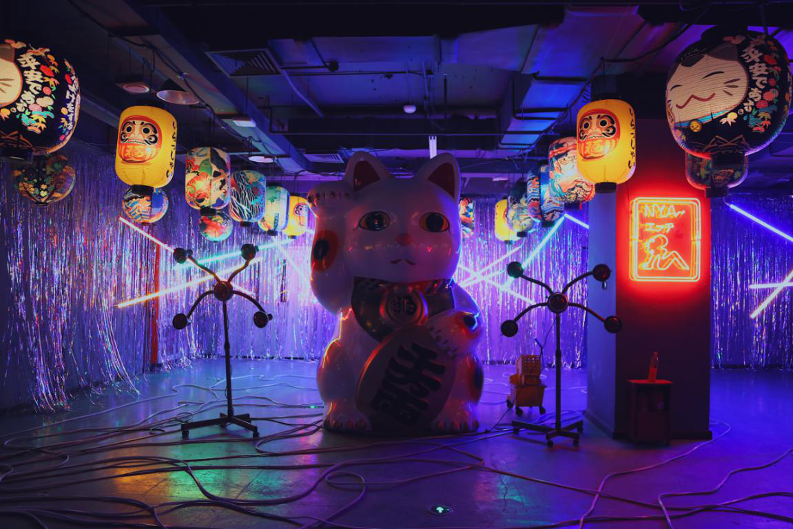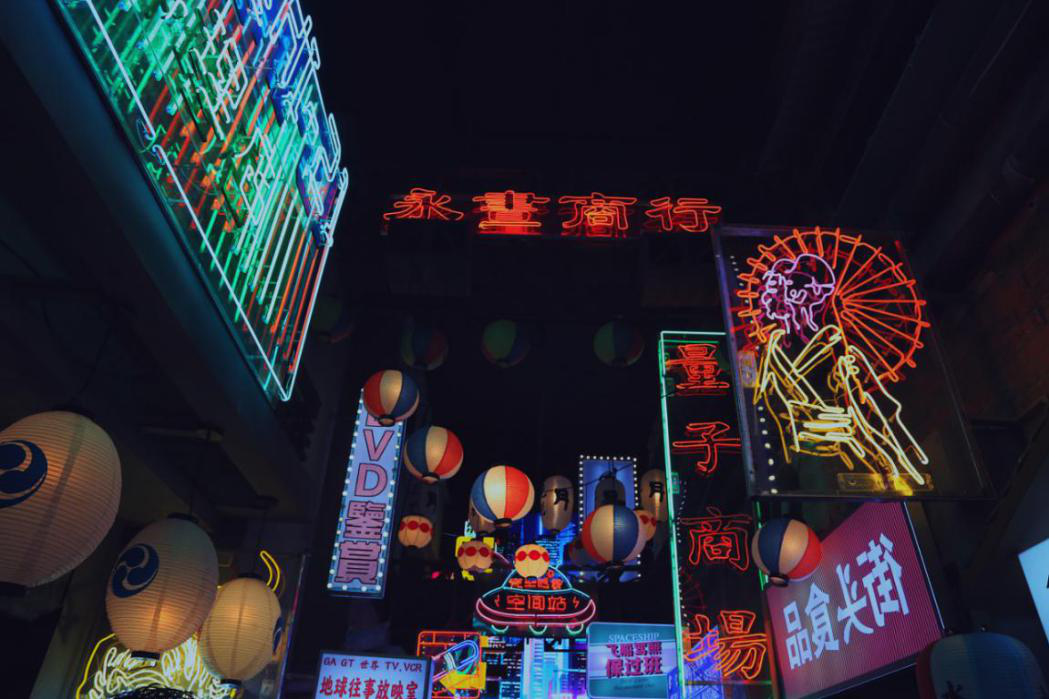 走进未来都市,老电影元素、老街景、霓虹灯、水泥地、写着不同字符的招牌……堆砌起那些旧时细碎的时光。走进这个场景,时间放佛凝固了。小吃摊位的火锅和被打开的酒瓶,猛然把你拉到另一个空间:一位孤独的食客为何深夜独饮?可是正经历着悲伤?你可以把脑海里的故事对应在每个位置上,会感觉到所有的物件瞬间活了。