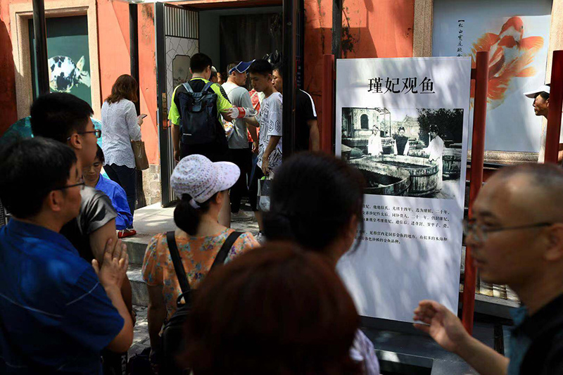 观众在延禧宫内欣赏各类品种金鱼。