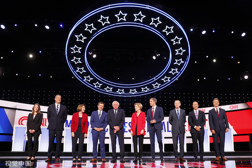 当地时间7月30日晚,美国民主党参选人举行第二轮电视辩论。图/视觉中国