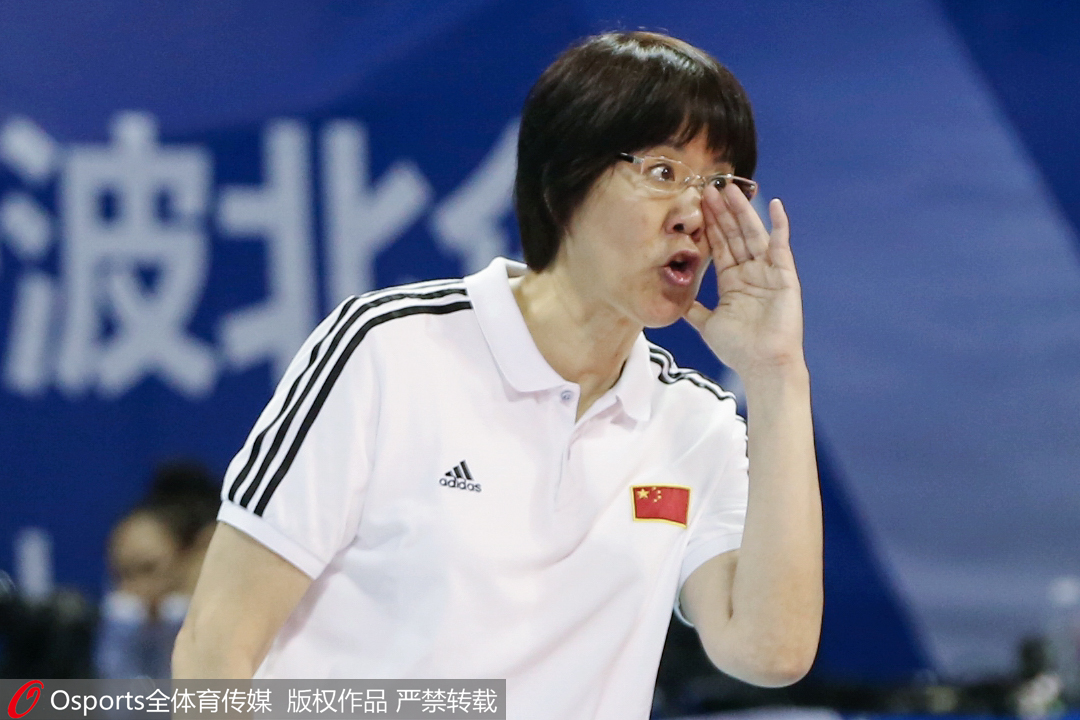 今晚比赛中,中国女排主教练郎平场边指导。 图/Osports