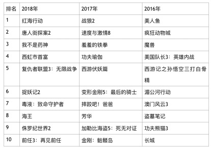 中国电影年度票房排名(来源:猫眼专业版)