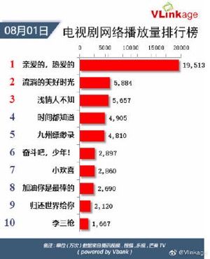 2019年8月1日电视剧网络播放量排行榜