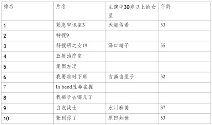 电视剧更是如此,中年女性同样能带来高收视率。不必说欧美著名的《女子监狱》、《大小谎言》、《杀死伊芙》、《使女的故事》等剧集;在同处儒家文化圈的日韩,女主角也早已不是年轻女孩的专利了。在刚刚完结的春季档日剧中,收视前十的剧集中有一半是由30岁以上的女星担任主演的,53岁的天海佑希拿下收视第一,55岁的泽口靖子拿下第三。