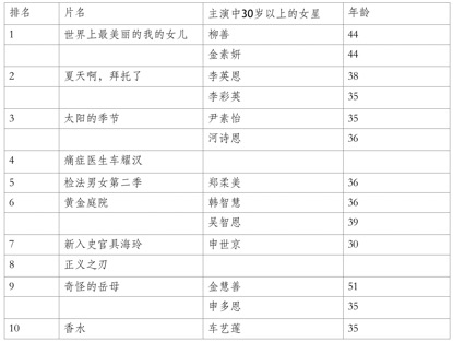 韩国上周收视前十的剧集中,共有13位30岁以上的女星担任主演,44岁的柳善和金素妍共同主演的《世界上最美丽的我的女儿》成为收视冠军。在国内,豆瓣热度最高的海外剧集中,也有大量中年女演员担任主演的。当然,其评论人数远不及国内电视剧,但至少可以表明,国内也有相当一部分观众对此并不排斥。