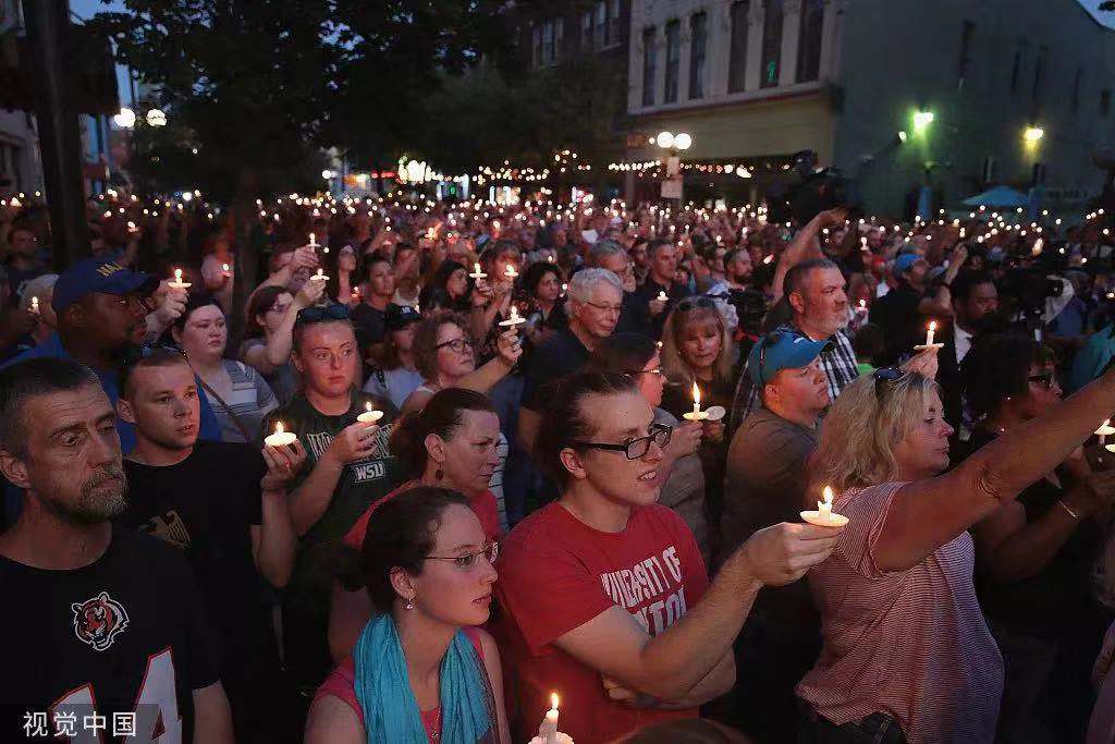 民众为代顿市枪击案遇难者守夜。图/视觉中国