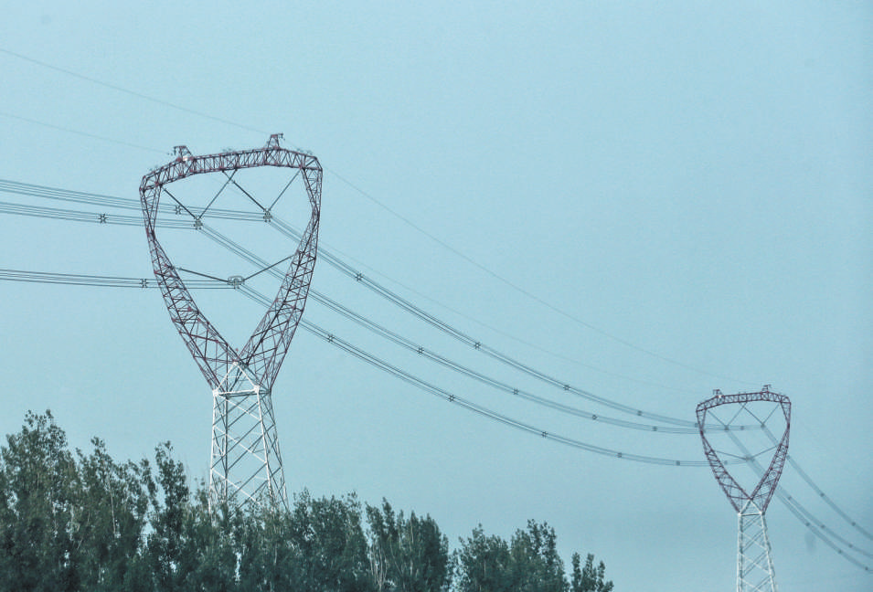 场景:京承高速旁的高压线架子好像两个“笑脸”在路旁守候。