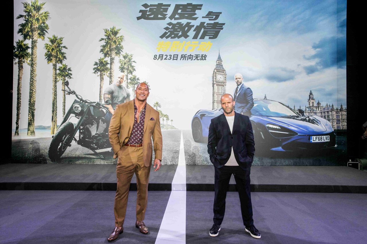 新京报讯 (记者 李妍)8月5日晚,电影《速度与激情:特别行动》在北京举行新闻发布会,道恩·强森,杰森·斯坦森,及导演大卫·雷奇、编剧克里斯·摩根、制片人海拉姆·加西亚现身,分享了幕后拍摄趣事。《速度与激情:特别行动》将于8月23日在中国内地正式上映。