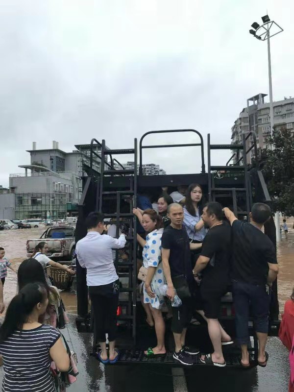 记者从乐山市公安局了解到,6日上午8时40分至11时10分,乐山市公安局特巡警支队民警驾驶特种攀登车来到春华路与白燕路交叉口,被淹路段水深超过50公分,超过膝盖。2个多小时,民警利用特警车摆渡市民900余人。记者了解到,乐山特警还出动多台装甲车及其他警用车辆帮助市民出行。