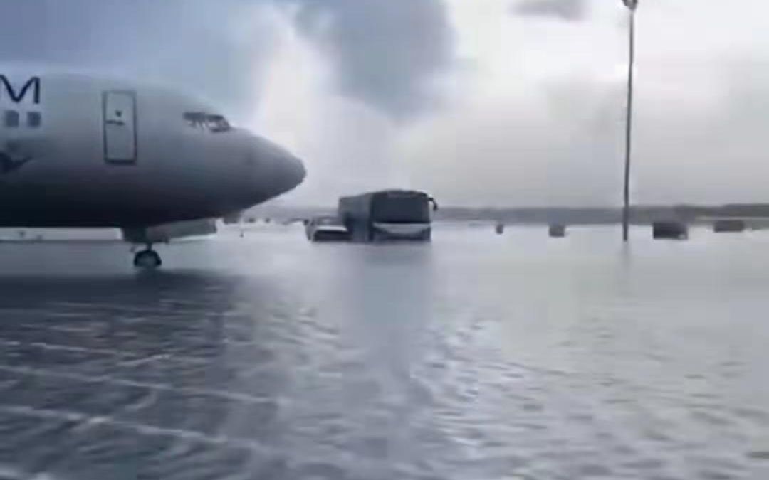 青岛流亭机场内部分地段出现积水,有航班顺延