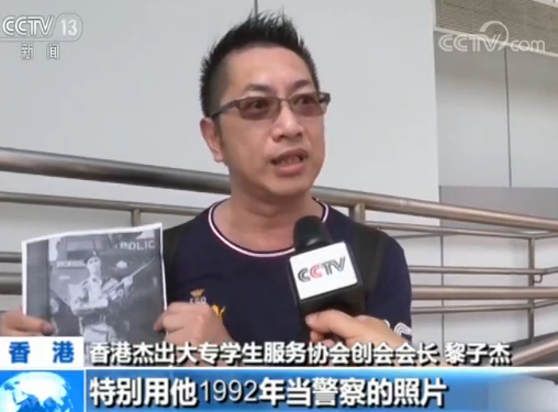 香港杰出大专学生服务协会创会会长黎子杰:我也是警察家属,所以这次非常支持。我爸昨天听见我要来参加这个活动,特别用他92年当警察的照片,还有签名。