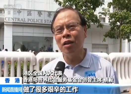 港区全国人大代表、香港岛各界社会服务基金会创会主席蔡毅:我们,包括我们接触的很多香港市民,都(了解)过去一段时间香港警察,在维护香港的法治和维护市民的利益方面,做了很多艰辛的工作,他们都很想来慰问警察,所以,今天在中区这里,我们看到的是很多是自发的,而且一家老小的陆续来到警署这边来慰问警察,那么我们相信香港的主流民意,还是希望能够把香港的秩序恢复到正常的秩序,法律能够得到彰显,我们相信只要香港市民多站出来,多发声,香港是能够恢复原来的法治和原来的社会秩序。
