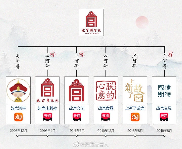 8月12日,天猫、人民日报和故宫联合宣布,故宫文具将在8月下旬上线天猫,这是故宫开在天猫淘宝的第6家店。此前,故宫淘宝、故宫文创、故宫出版、故宫食品、上新了故宫均已进驻天猫淘宝。