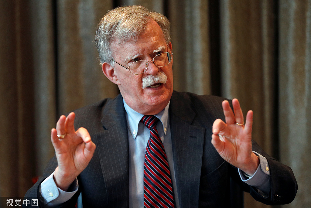 当地时间8月12日,美国国家安全顾问博尔顿访英期间会见当地记者。图/视觉中国