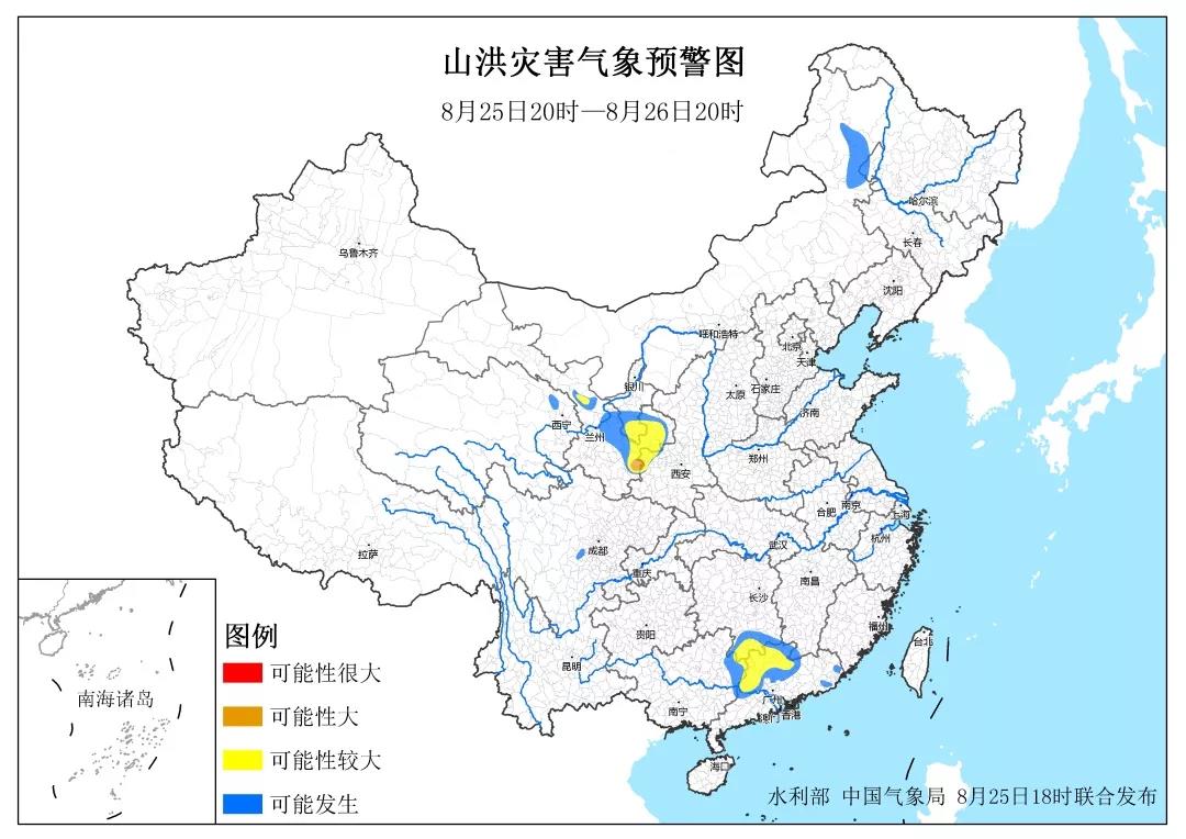 新京报快讯 据水利部官方微信消息,水利部和中国气象局8月25日18时联合发布山洪灾害气象预警:预计,8月25日20时至8月26日20时,湖南南部、广东北部、广西东部、陕西西部、甘肃中东部、宁夏南部等地部分地区发生山洪灾害可能性较大,其中,陕西西南部、甘肃东部局地发生山洪灾害可能性大。其他地区也可能因局地短历时强降水引发山洪灾害,请各地注意做好实时监测、防汛预警和转移避险等防范工作。