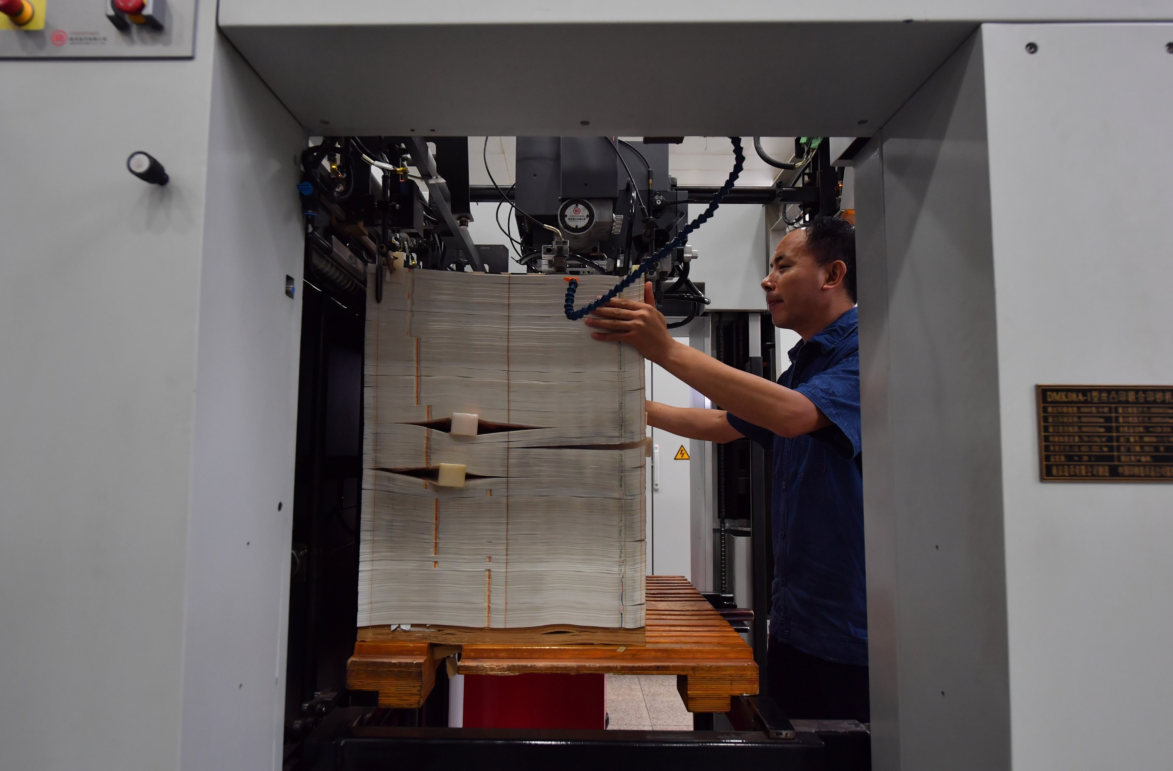 伴随着设备的轰隆声,一张张白纸“换装”成为人民币。8月26日,距离新版人民币面世还有4天,石家庄印钞有限公司车间内的工作人员们有序忙碌着。