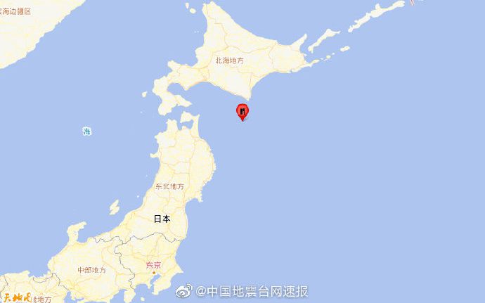日本北海道附近海域发生6.0级地震 震源深度20千米