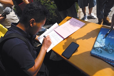 交通违法市民现场抄写交通安全“十不准”法规条文。