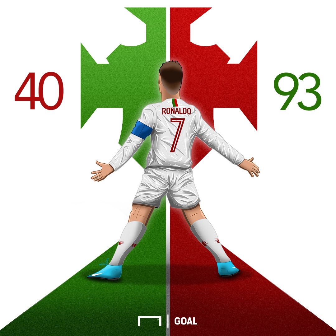 C罗的93个国家队进球在40个对手身上斩获。图/社交媒体