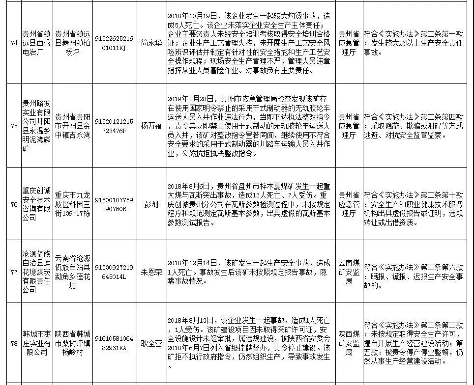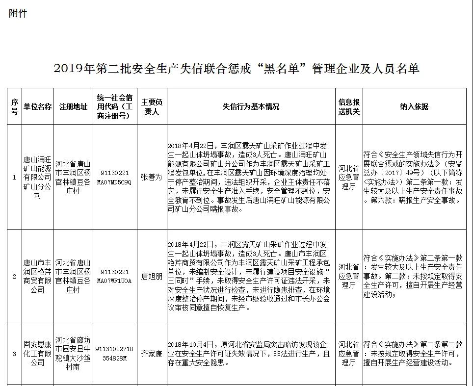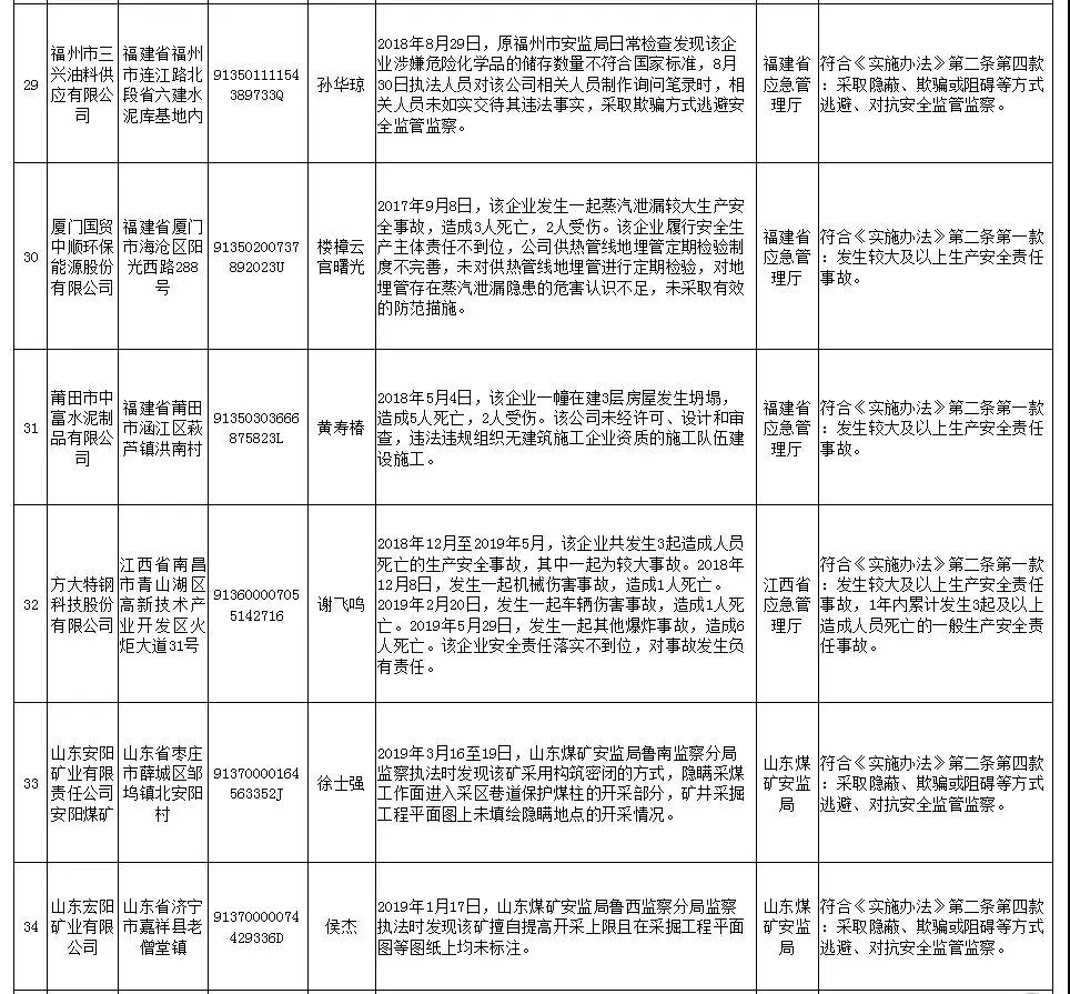 应急管理部公布第2批安全生产失信联合惩戒“黑名单”