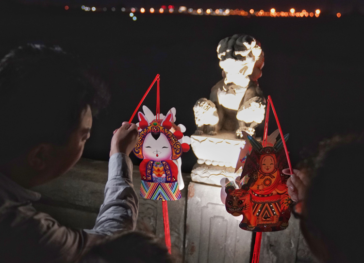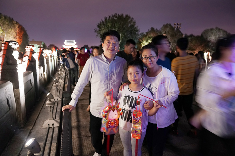 9月13日,卢沟桥、宛平城地区景区灯光全面开放。赏月的市民早早来到卢沟桥。