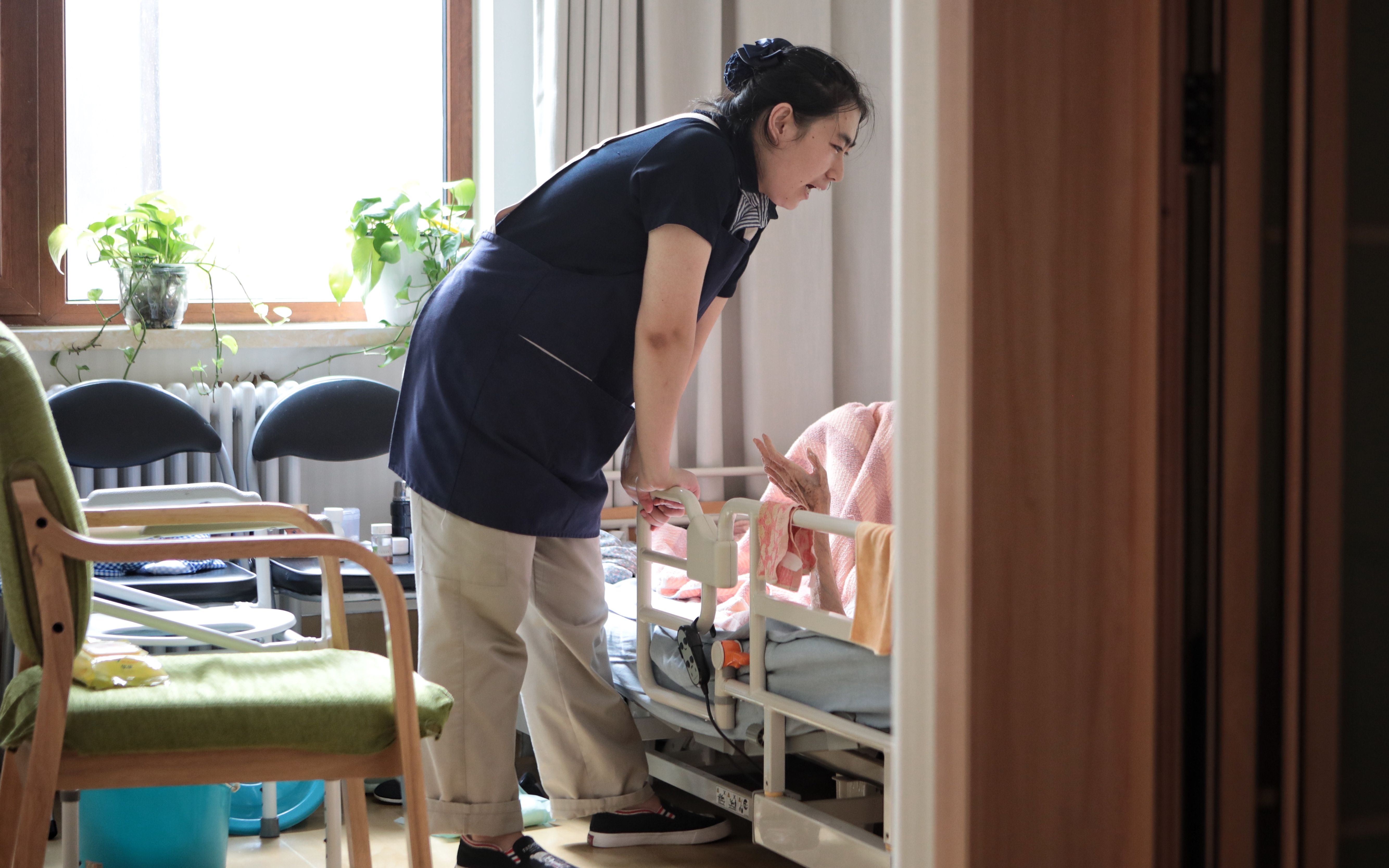 她始终很难开口向别人介绍,自己的工作是养老院护理员。如同在许多人眼里,护理员是没有技术含量的苦力,她的切身感受也是这样。每天巨大的工作量,根本达不到服务老人的宗旨,只能保证老人吃饱和“看上去”整洁。