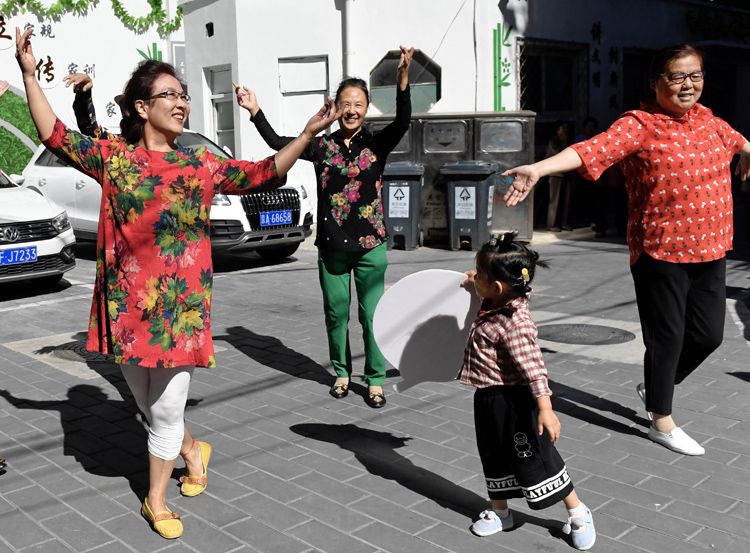 新京报讯 9月18日,朝阳区香河园街道西坝河西里社区居民在院子里聊天跳舞,享受社区生活。灰墙面披上绿外衣,“斑秃”地块植上草皮,车辆按位停放……朝阳区香河园街道西坝河西里社区在朝阳区“全要素小区”改造中,拆违1700多平方米,更换下水管网,小区环境焕然一新。