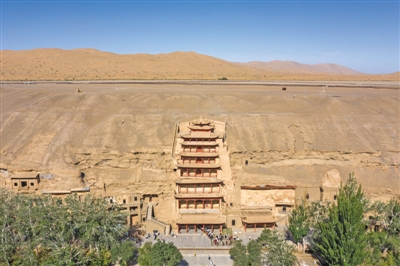 7月11日,甘肃省酒泉市敦煌莫高窟九层楼建筑。图/视觉中国