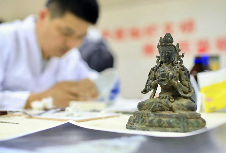 待修复的地天母铜佛像。