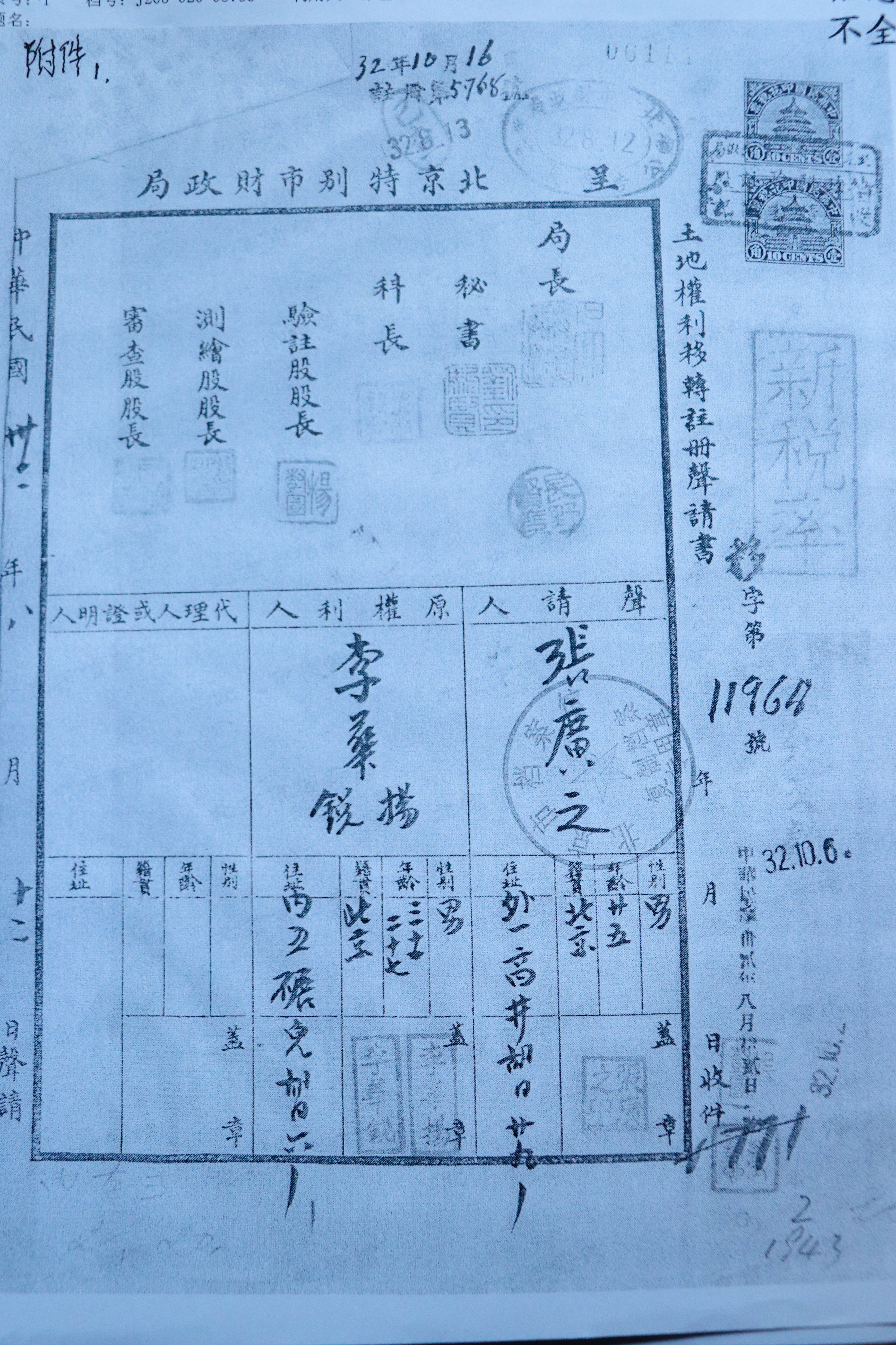 80年前的房产证复印本,原件现收藏在北京市档案馆。