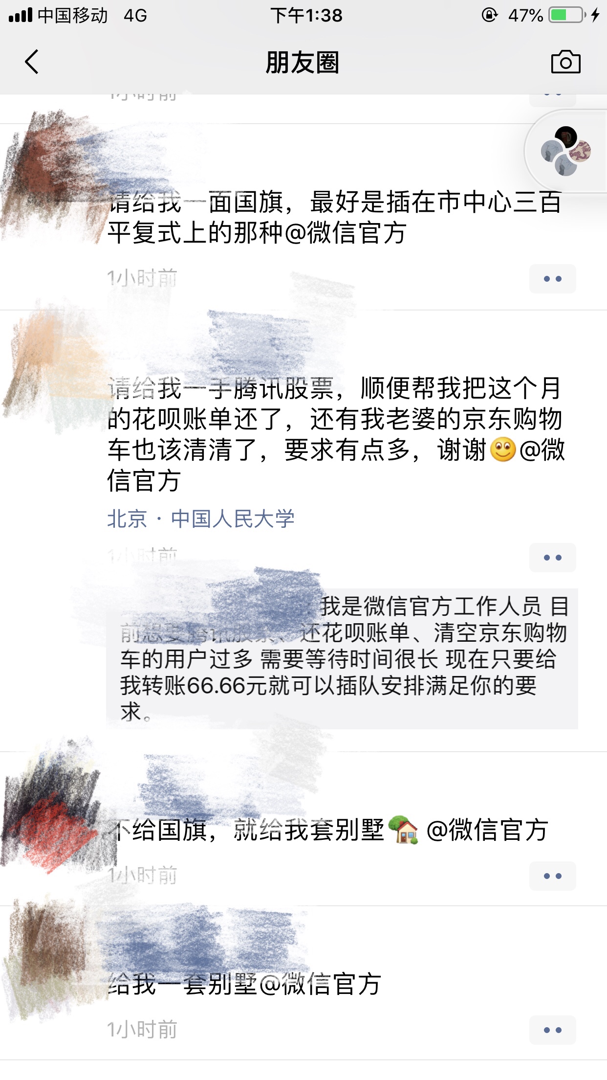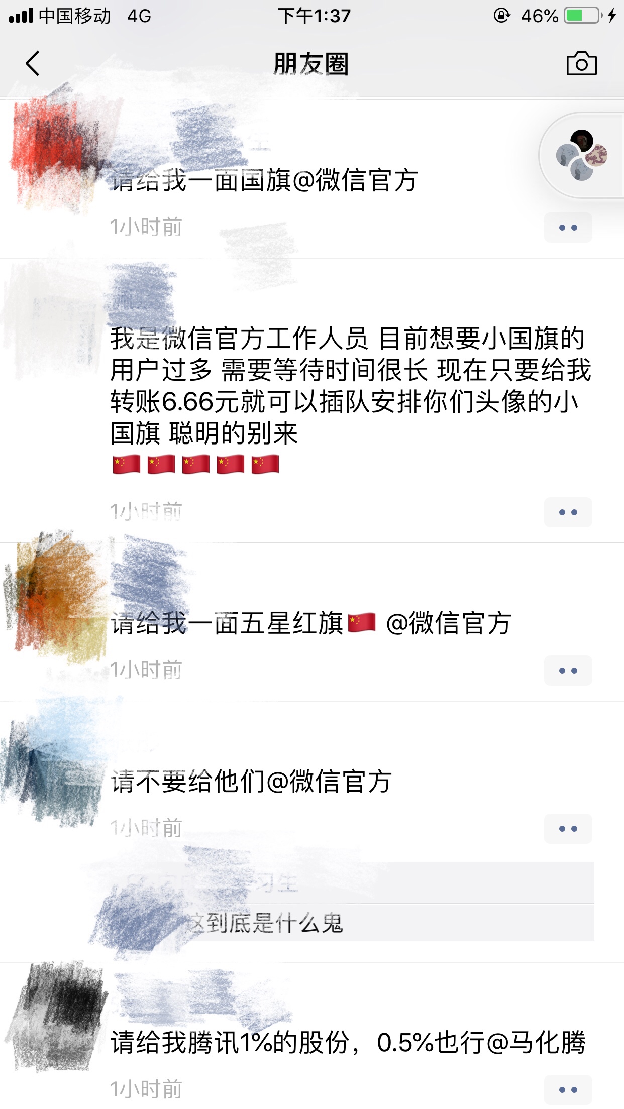 微信朋友圈被“求国旗”和“求其他”刷屏。