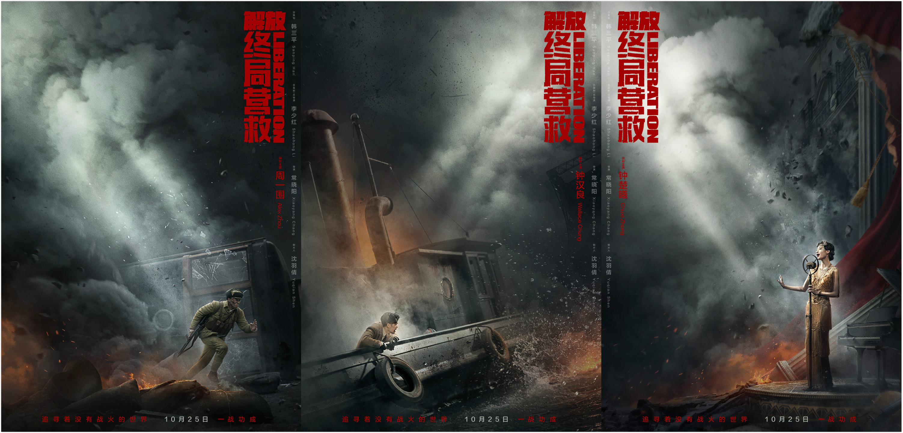 新京报讯(记者 周慧晓婉)9月24日,由韩三平任总策划、李少红任总监制兼总导演、常晓阳任导演的战争电影《解放·终局营救》曝光了一组“雾散云开”版海报和一支人物特辑。特辑中,演员们为了达到最好的效果勇于尝试各种高难度的拍摄任务。解放军炮兵侦察连连长蔡兴福的扮演者周一围、国民党军需官姚哲的扮演者钟汉良、拥有双重身份的神秘歌女梅艳的扮演者钟楚曦、解放军炮兵侦察兵马宝树的扮演者王迅,以及总监制兼总导演李少红和导演常晓阳分别阐述了难忘的拍摄经历。该片将于10月25日全国上映。