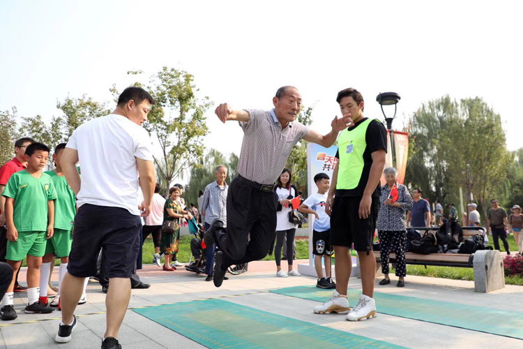 游客参与北京市全民健身“北京纪录”挑战赛。