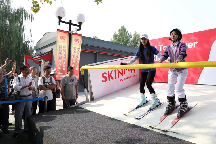游客体验滑雪机。