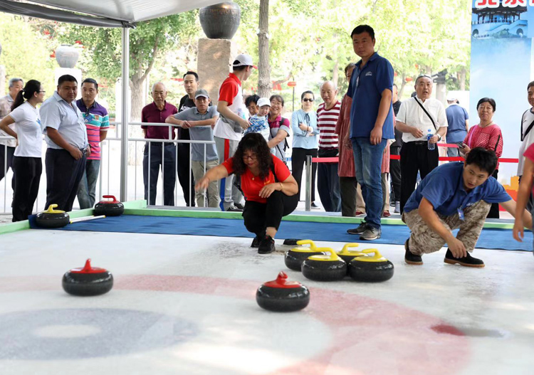 游客体验“CO₂超临界直冰”冰壶道。