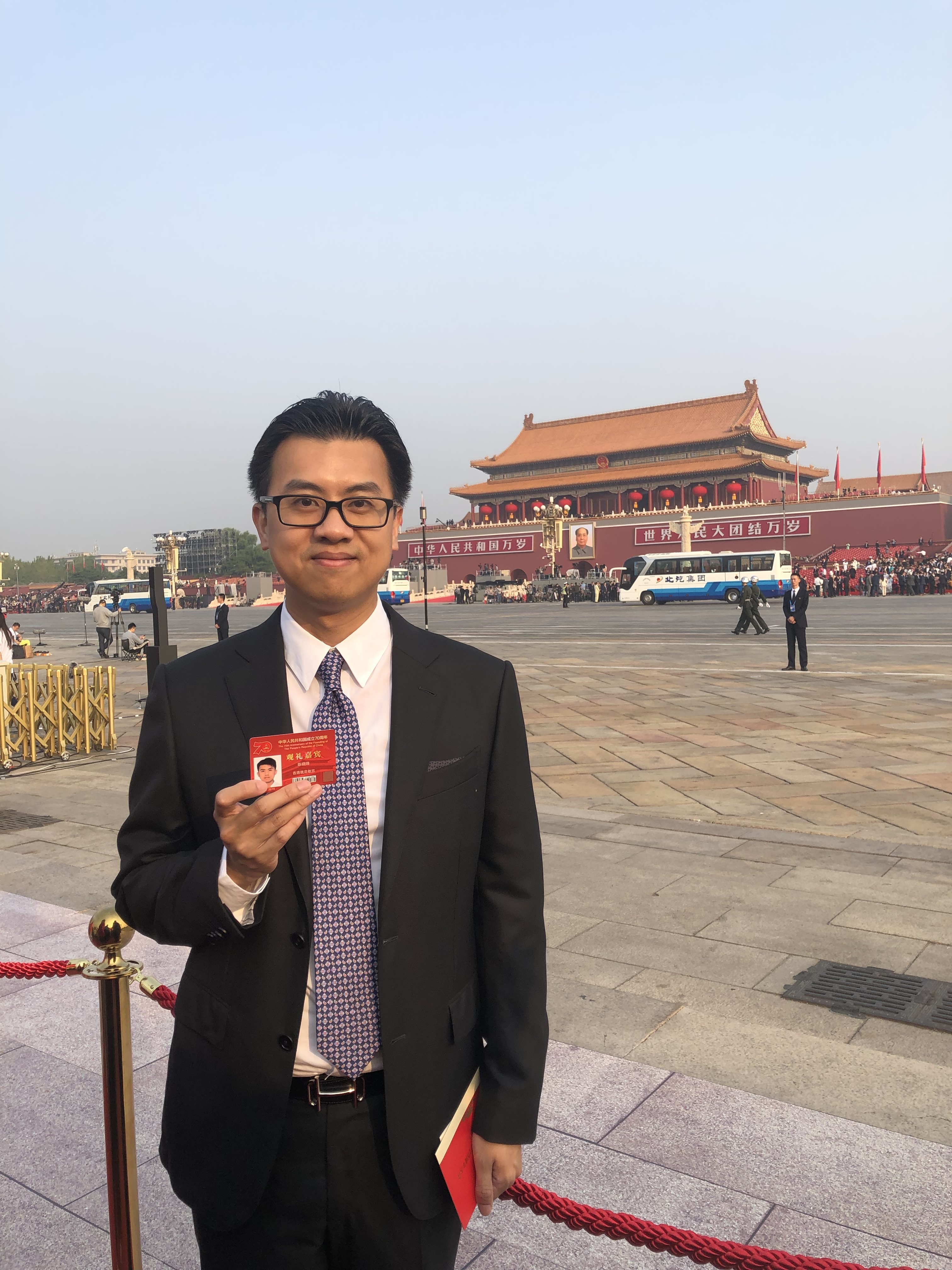 10月1日,陈晓锋在天安门广场观看阅兵仪式。 受访者供图