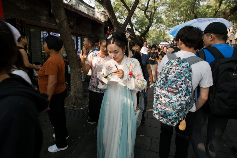 国庆假日第三天 南锣鼓巷游客开启“逛吃”模式