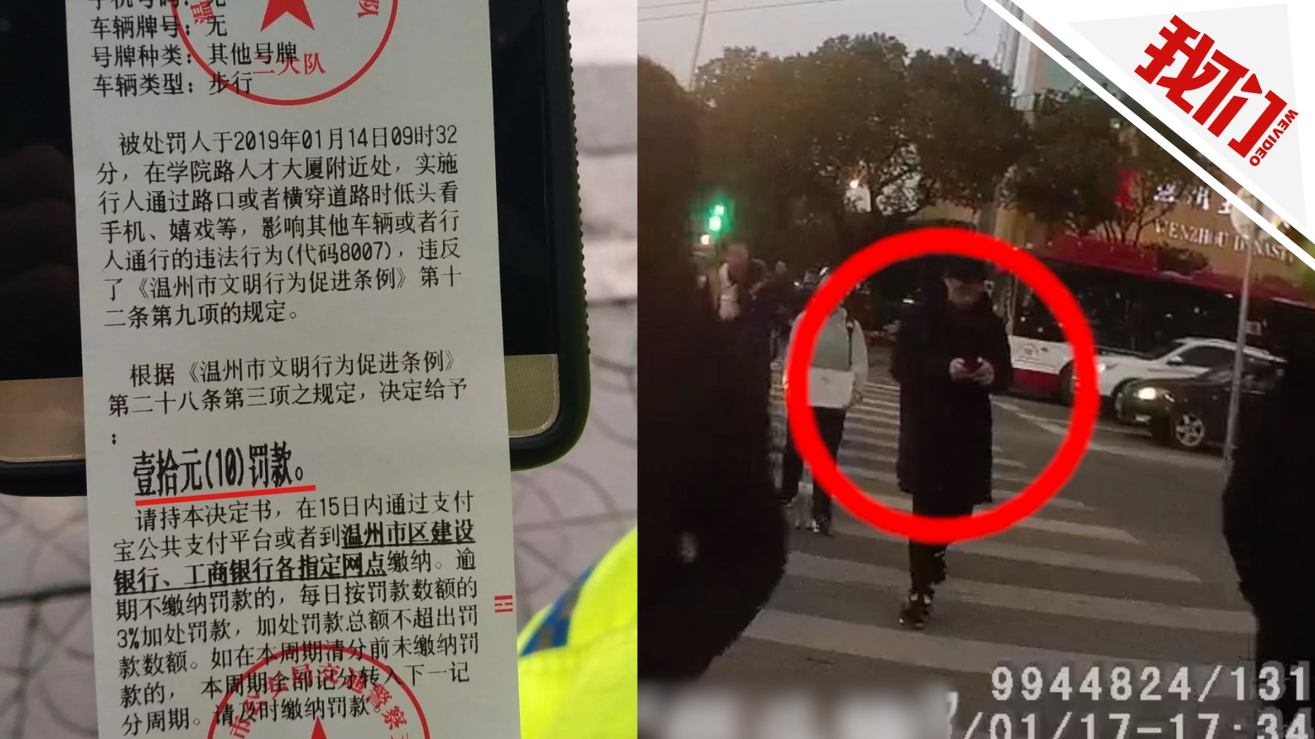 据报道,温州市在2019年元旦开始实施的《温州市文明行为促进条例》,明确规定,“对于行人通过路口或者横穿道路时低头看手机、嬉戏等,影响其他车辆或者行人通行等不文明行为要重点整治,违反该规定的会受到警告或十元罚款”。