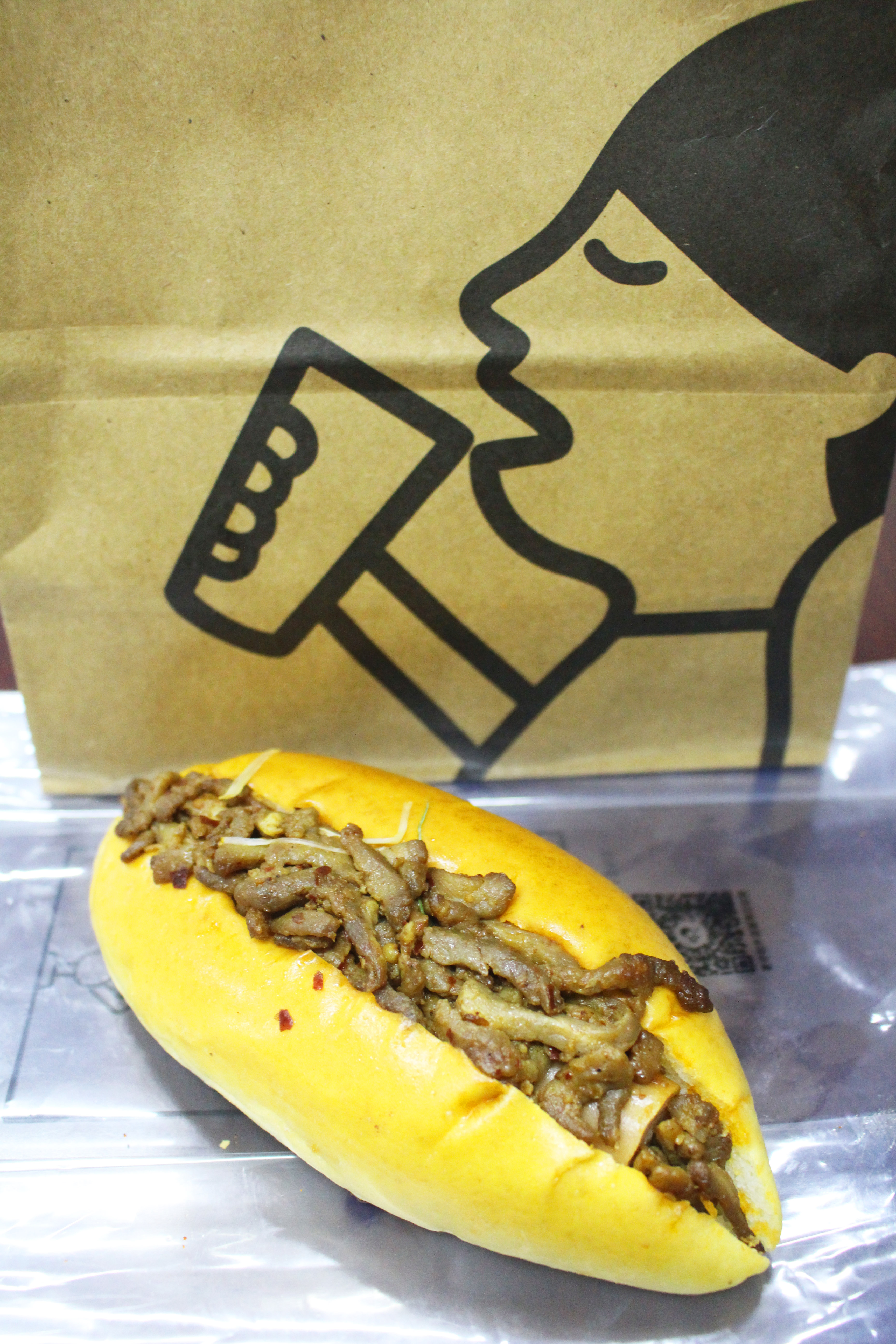 好奇的京蜜,先是尝了里面的肉丝,发现其实相比于老北京经典菜品“京酱肉丝”,它的味道做了改良,肉丝中没有加入太多的“酱”,反而是多加了些小辣椒,增添了些西式餐点的味道,相比于“京酱肉丝”的酱香浓郁,喜茶的这款“京酱肉丝包”会香辣爽口一些,配合着外层的松软面包咬下去,口感甚佳。而且这款“京酱肉丝包”售价18元,性价比也较高。