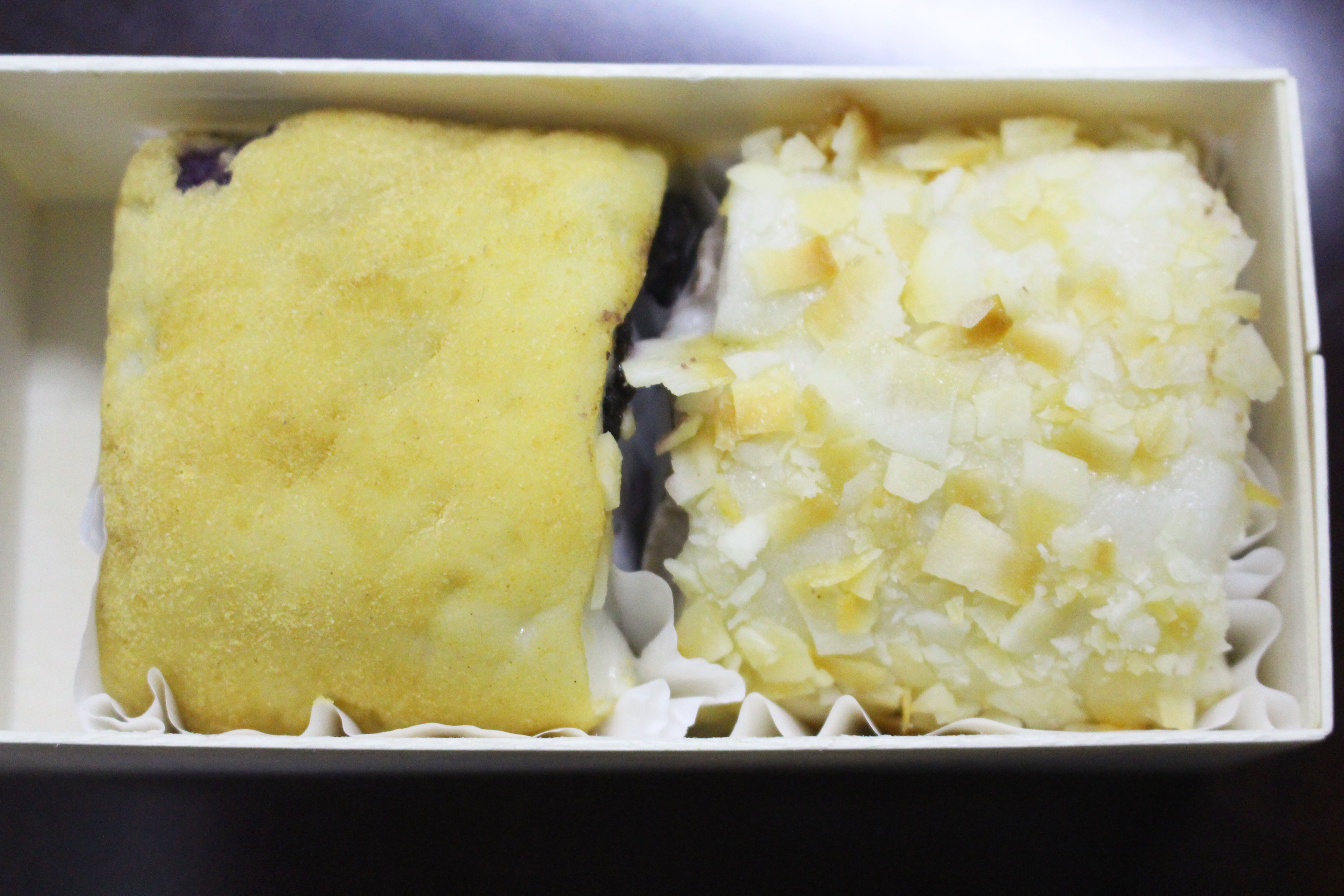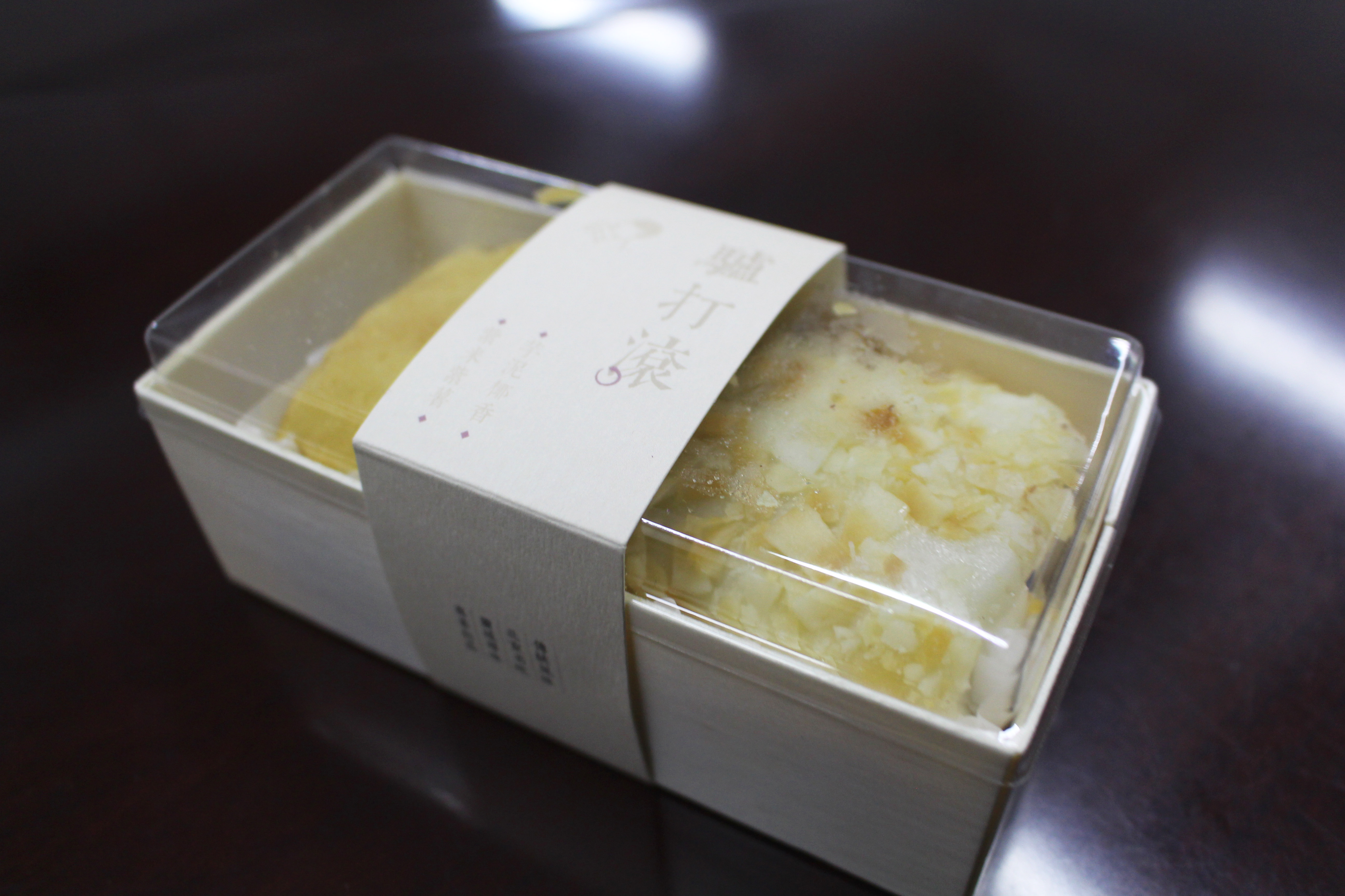 京蜜觉得,既然一盒里面放了两块,最好能在口味设定上多费些心思,能让顾客品尝到不同的味道。像是这两块“驴打滚”,不仅口味相近,而且味道都偏甜,还是名头大于内容了。