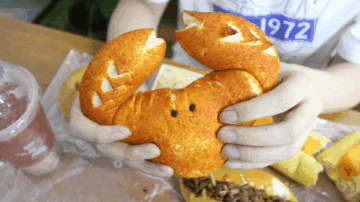 第一眼看到“上海蟹黄包”时,京蜜确实被它的外形震撼到了,因为无论从形状还是色泽,看起来都很像大闸蟹,外观和创意值得点赞。可是,期待越高,失望越大。这款欧包里面的蟹黄确实很足,连蟹腿里都能吃到蟹黄,但只有在面包新鲜出炉趁着热乎劲儿吃上一口,才能品尝到蟹黄的鲜美,而京蜜品尝时蟹黄馅已经凉了,而且里面也没有一点汤汁,所以大打折扣。