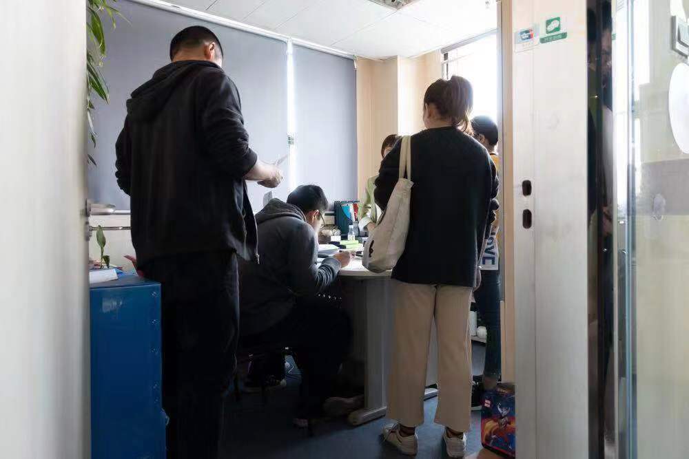 韦博英语崇文门店财务办公室内,学员们正在办理退费手续。新京报记者 李凯祥 摄