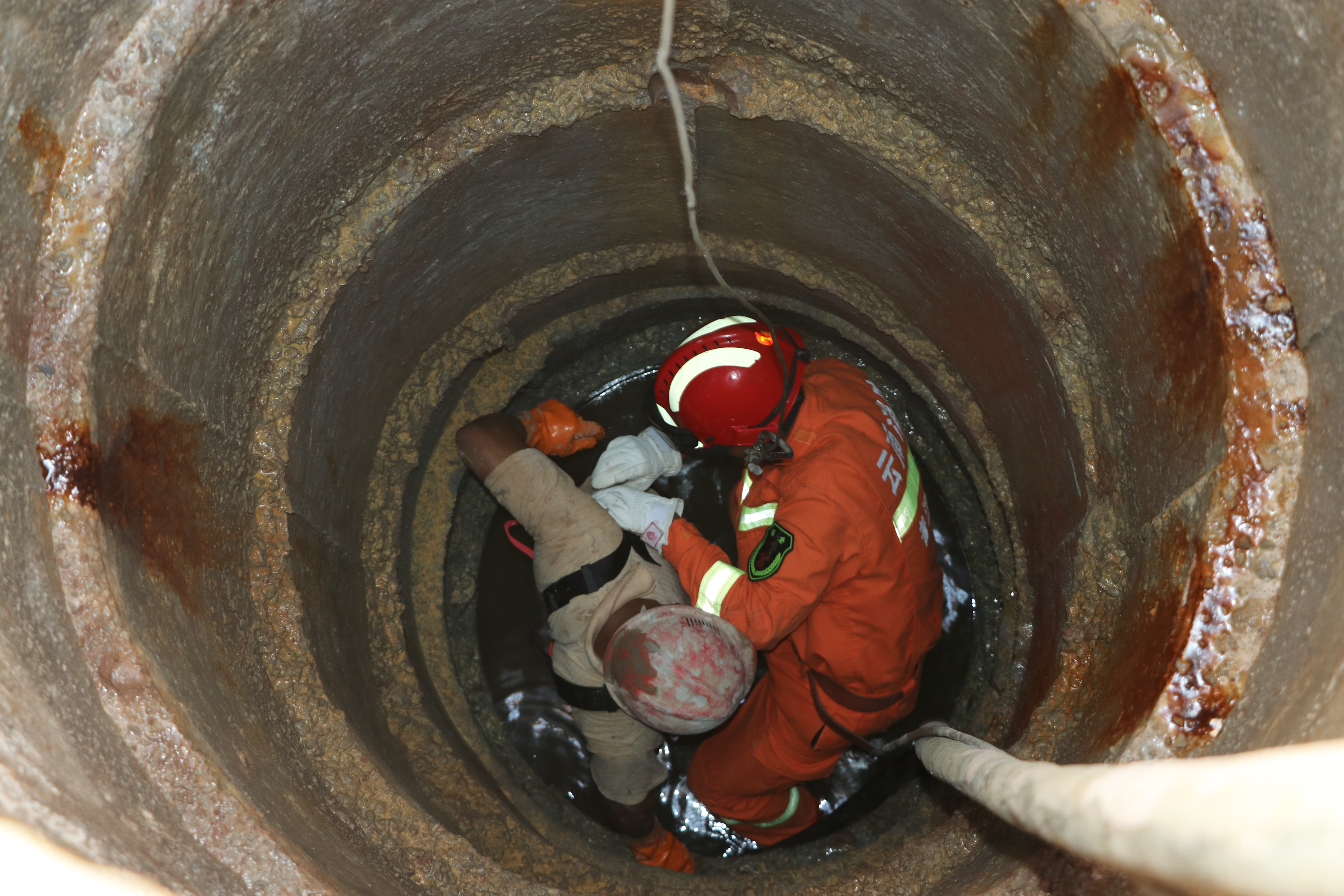 消防表示,经了解,被困人员在井下施工作业时,使用水桶往井外吊运石头,但石头不慎滑落砸中其腰部,导致其腰部以下无法动弹,被困在深约6米、直径约1米的井底。