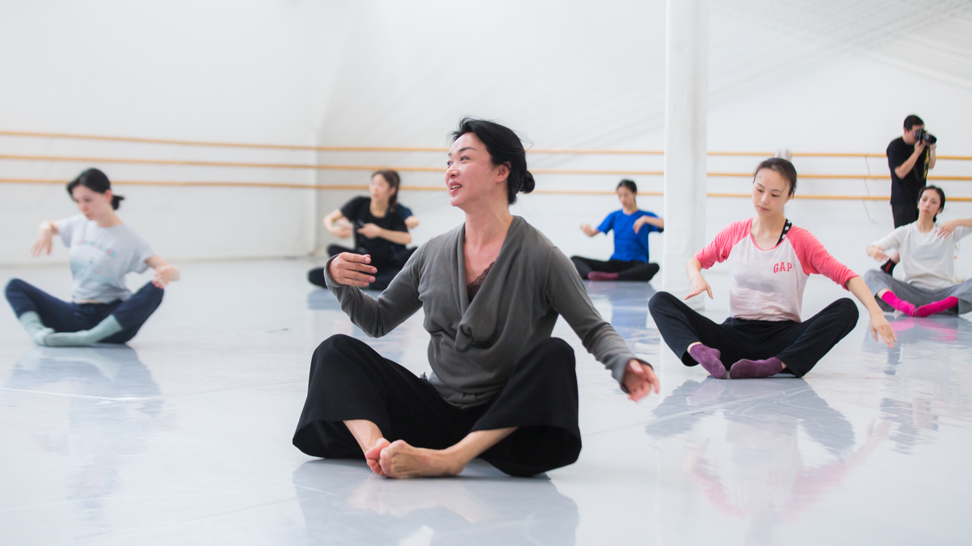 发布会以“在金星舞蹈团的一天”为主题,邀请大家参与沉浸式地体验作为金星舞团一名舞者的感受。参与者们身穿宽松衣服,与专业舞者一起上了一堂晨课,课程内容虽是现代舞,但零基础的也可以轻松应对。作为艺术总监的金星也朴素地身穿练功服,坐在舞者们中间跟着练功。