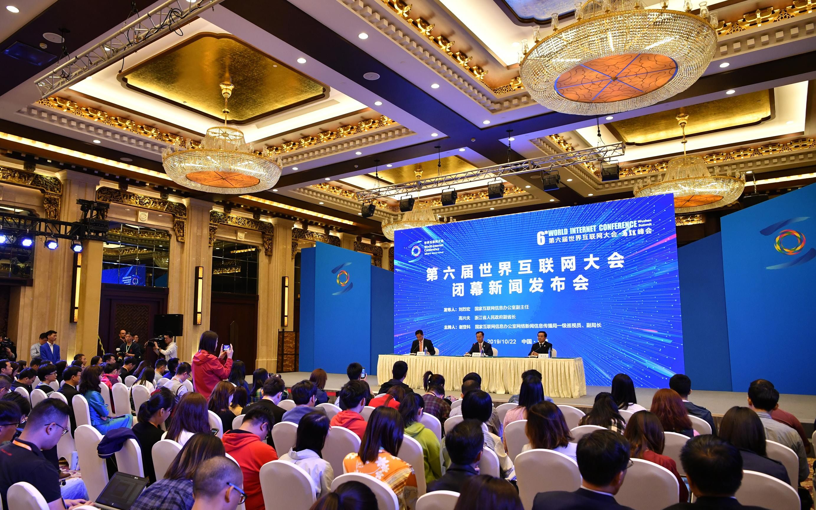 第六届世界互联网大会今日闭幕,国家互联网信息办公室副主任刘烈宏、浙江省副省长高兴夫出席大会闭幕新闻发布会,介绍大会取得的各项成果。摄影/新京报记者 吴江