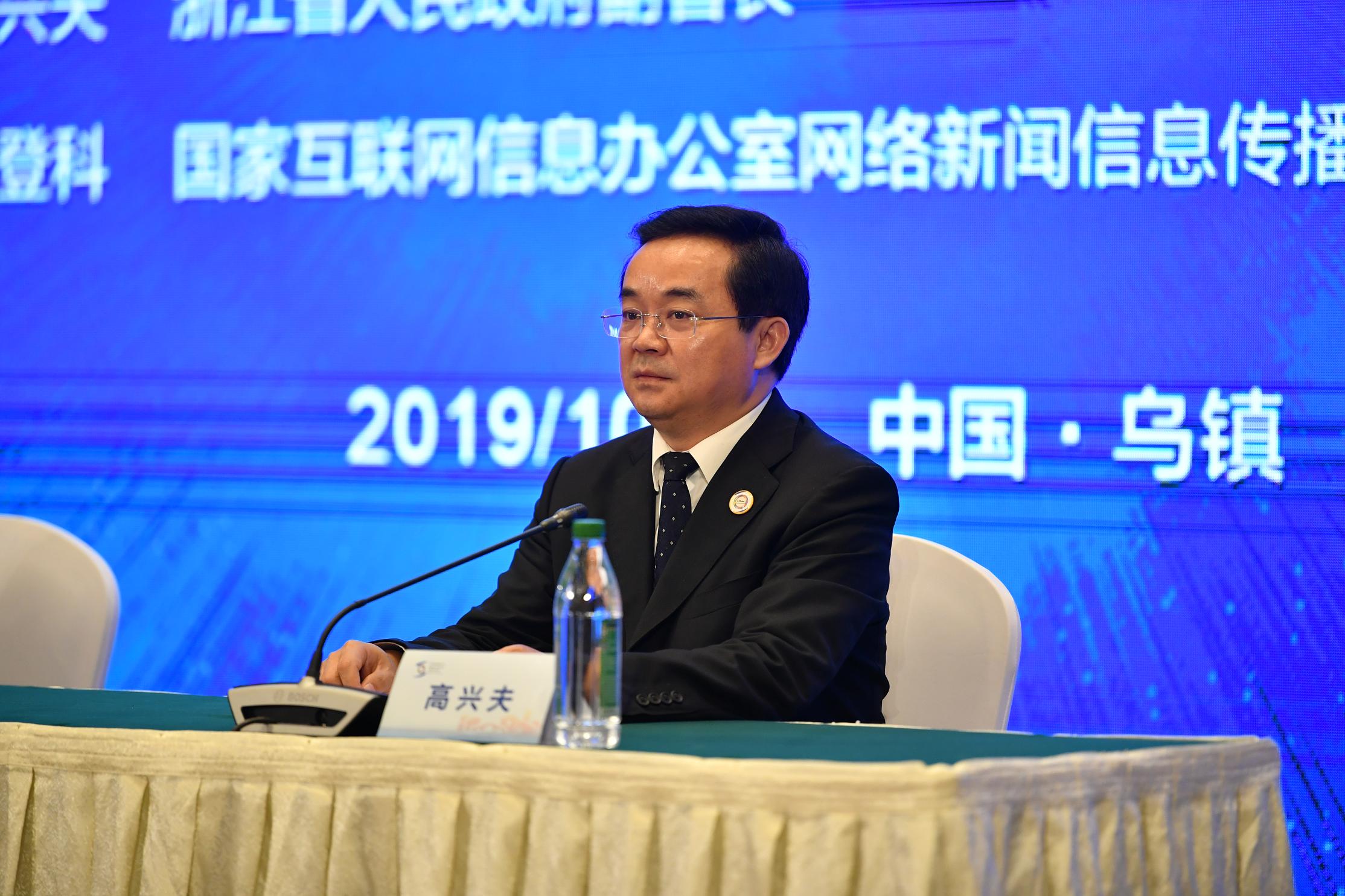 第六届世界互联网大会今日闭幕,浙江省副省长高兴夫出席大会闭幕新闻发布会,介绍大会取得的各项成果。摄影/新京报记者 吴江