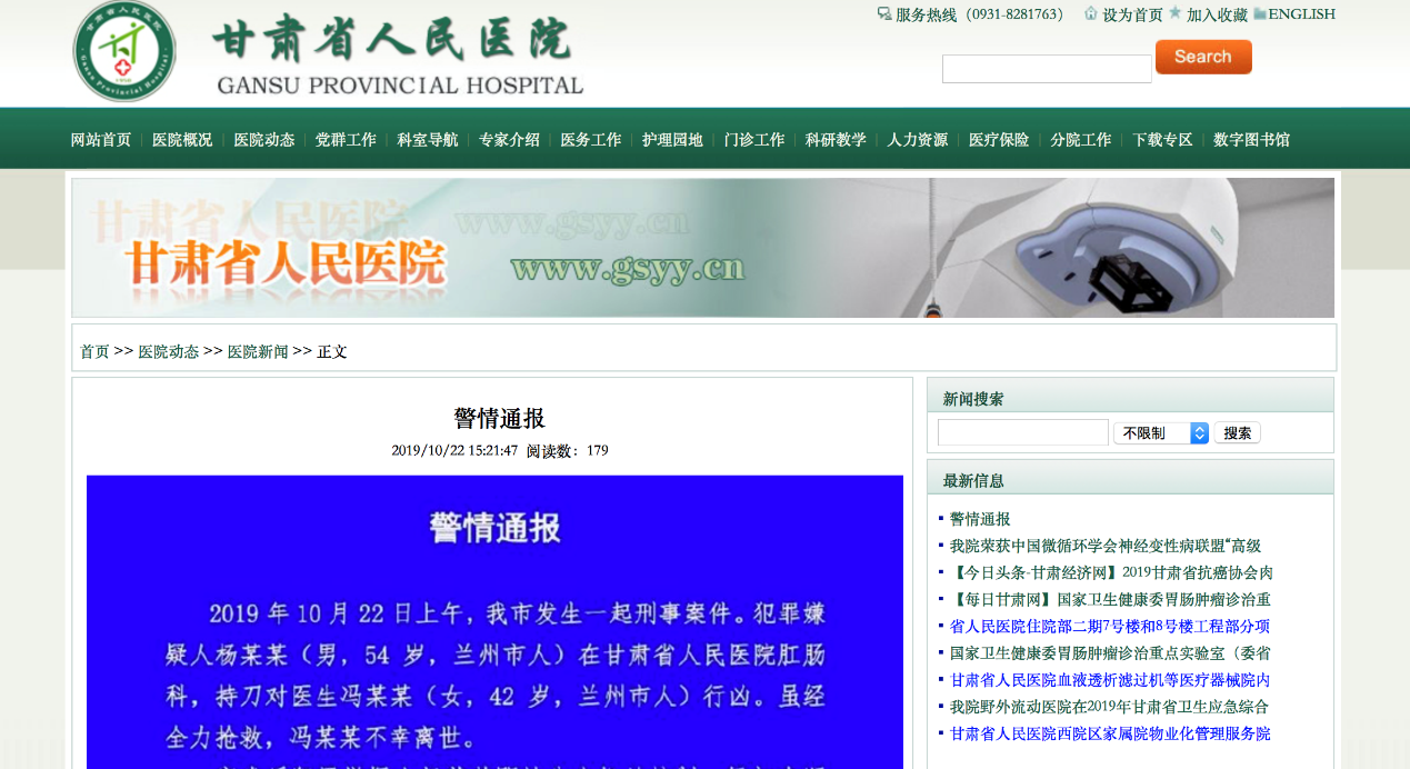 甘肃省人民医院一名女医生遇刺身亡 警方已介入调查